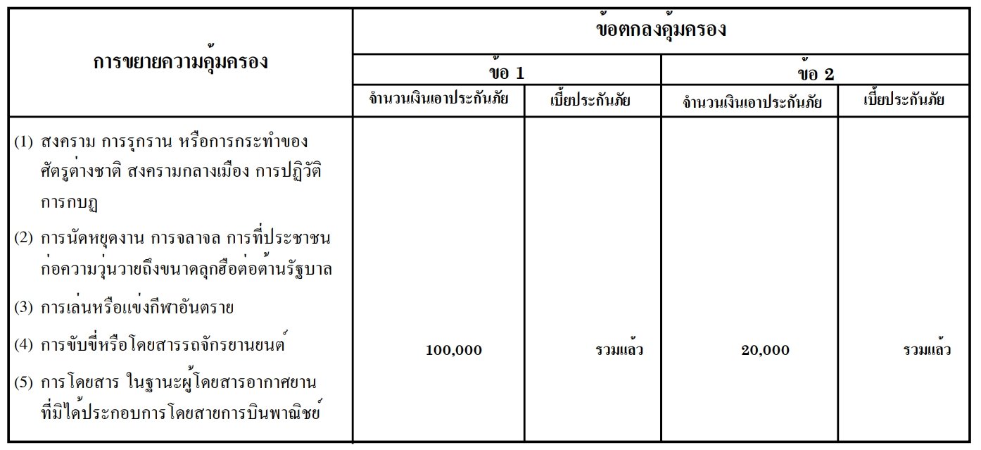 การขยายความคุ้มครอง : เป็นที่ตกลงกันว่า ในระยะเวลาซึ่งมีผลบังกับดังระบุไว้ในเอกสารแนบท้ายนี้ กรมธรรม์ประกันภัย